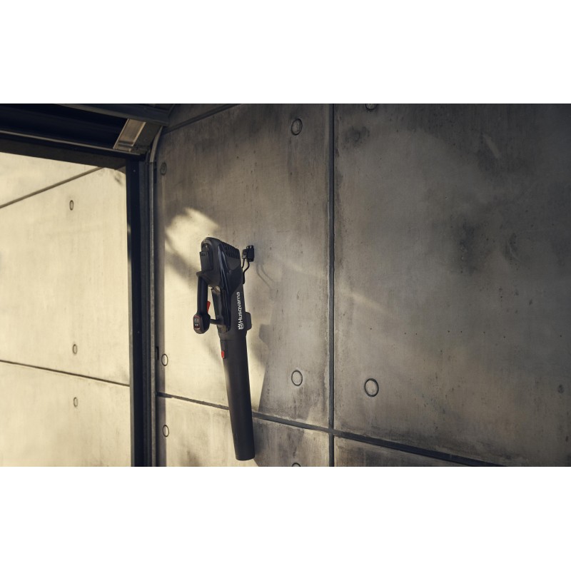 A 3 fokozatú fordulatszám-szabályozásnak köszönhetően a kényes virágágyástól a nedves levelekig bármit képes kezelni. A kényelmes, puha markolatú fogantyú és a kiegyensúlyozott, könnyű kialakítás megkönnyíti a lombfúvó használatát. A Husqvarna Aspire™ termékcsalád összes szerszámához hasonlóan ez is elegáns fekete dizájnnal rendelkezik, amelyet narancssárga részletek egészítenek ki, intuitív módon vezetve az interaktív pontokhoz. A szűk helyeken való tárolást megkönnyíti a kompakt méret, a mellékelt, méretre szabott kampó és a levehető cső. A 18 V-os POWER FOR ALL ALLIANCE akkumulátorrendszer rugalmasságot és helytakarékosságot kínál, mivel egy akkumulátor több szerszámhoz és kertészeti márkához is használható.