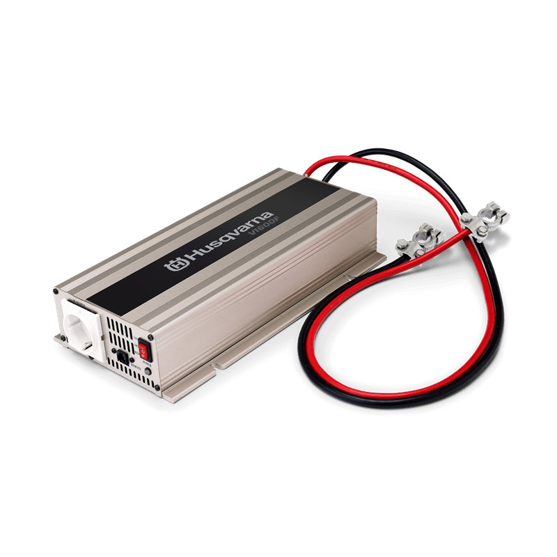 Autóba szerelhető inverter, mely 12V-ból állít elő 240V-ot a Husqvarna 36V Li-Ion akkumulátor töltők, pl. QC330 részére.